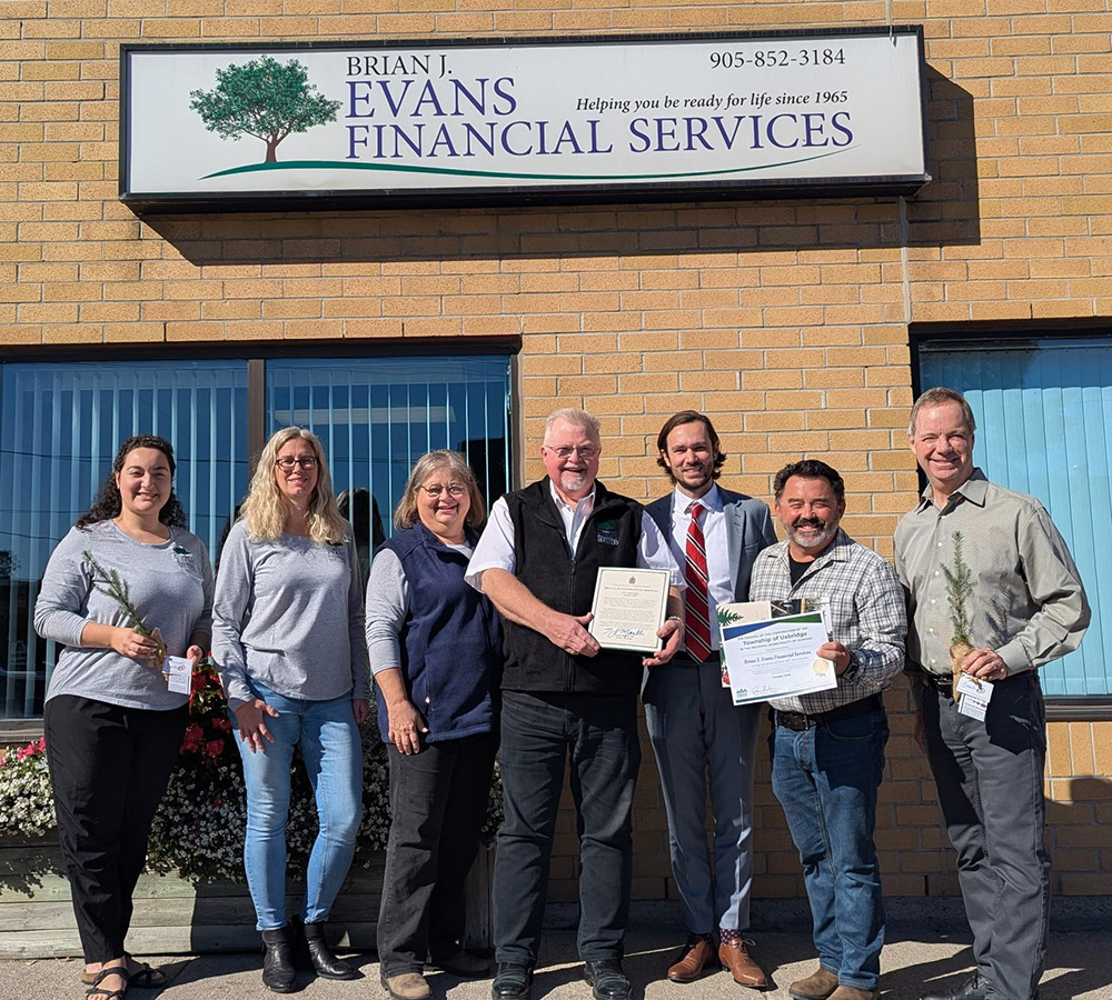 It was a great success! We had over 500 tree saplings and other swag to hand out, raffle prizes and lots of cake! Around 200 guests came to visit, including MP Jacob Mantle, Uxbridge Mayor Dave Barton, Regional Counsellor Bruce Garrod and Canada Life representative Craig MacTavish. The business received a number of certificates in recognition of the achievement.