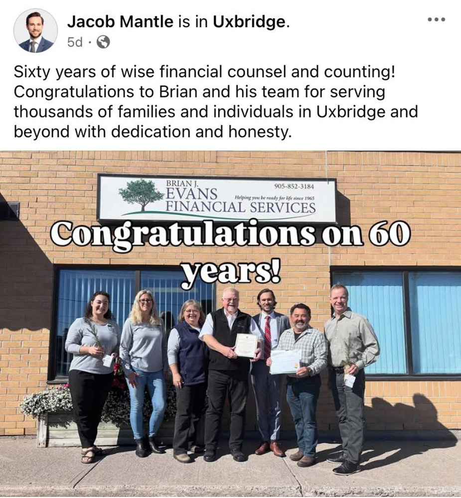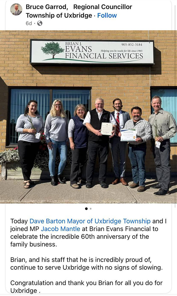 It is really quite hard to believe that the Evans financial business has been operating for 60 years!